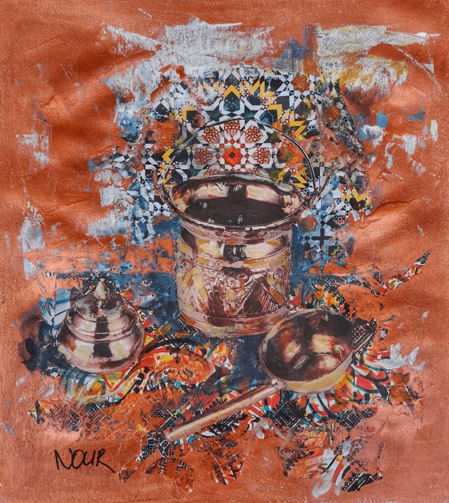 Nour @pop_art.collection “Medina Moment” – mixed media on cardboard (36 x 39cm) 2025