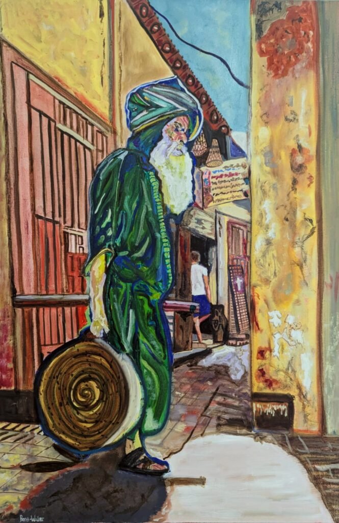Adam Smith (Bone Waller) @bone_waller_paintings “The guru of Fez Medina” – oil on  canvas (91.4 x 61cm) – 2025