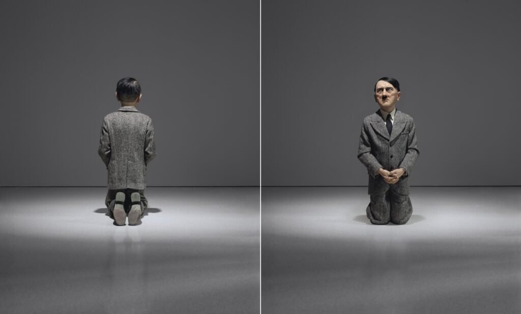 If attacking the Church wasn’t enough, Cattelan turned his lens toward the most repellent figure in human history. From behind, this small, child-like figure appears to be a schoolboy kneeling in humble prayer. But as you walk around to face the work, the shock hits: it is a hyper-realistic Adolf Hitler. By rendering the face of ultimate evil in a posture of penance and a scale of innocence, Cattelan created a psychological trap that forced viewers to confront the nature of forgiveness and the presence of evil.